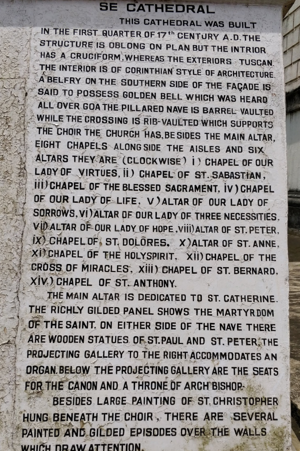 The Sé Cathedral has five bells. The existing tower houses a famous bell, one of the largest in Goa and often referred to as ‘Golden Bell’ on account of its rich tone which has been immortalized in a Portuguese poem.