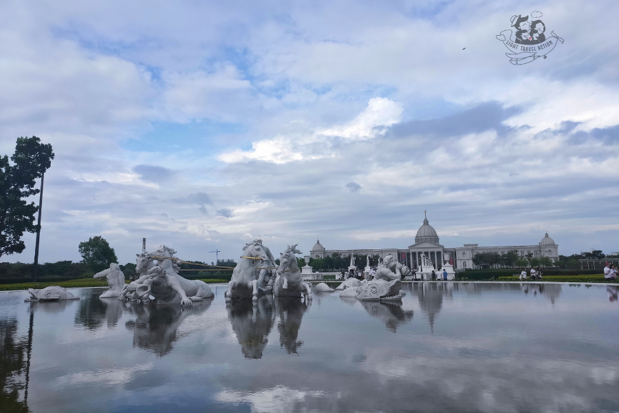 I was taken aback by this place and how! It is really huge, surrounded by beautiful lawns, fountains, sculptures, and a water body.