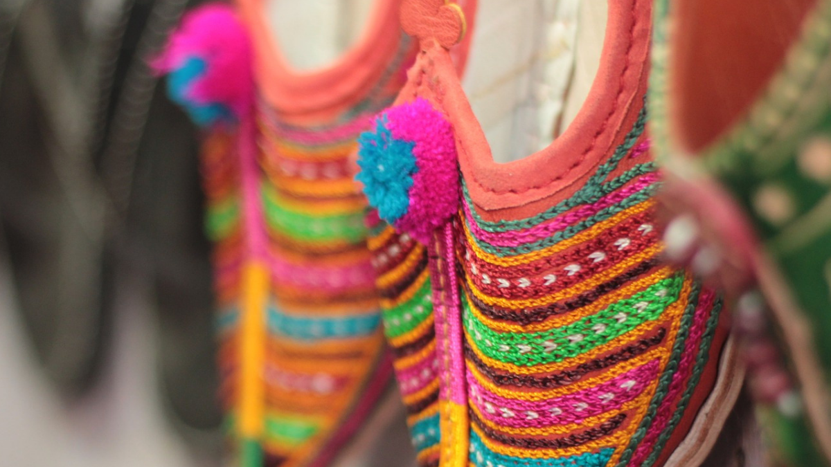 The markets of Jaipur are full of colorful, embroidered Mojris (traditional footwear).