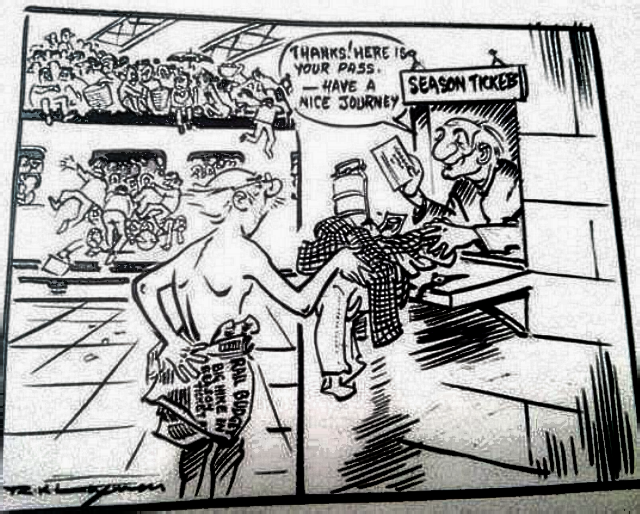 You can not travel without a ticket by train. If you are caught traveling without a ticket, you will need to pay the fare from the station you boarded the train or from the station which the train originally started or from the checking point with an equal amount of excess charge subject to a minimum of Rs. 250/- up to the point of detection.