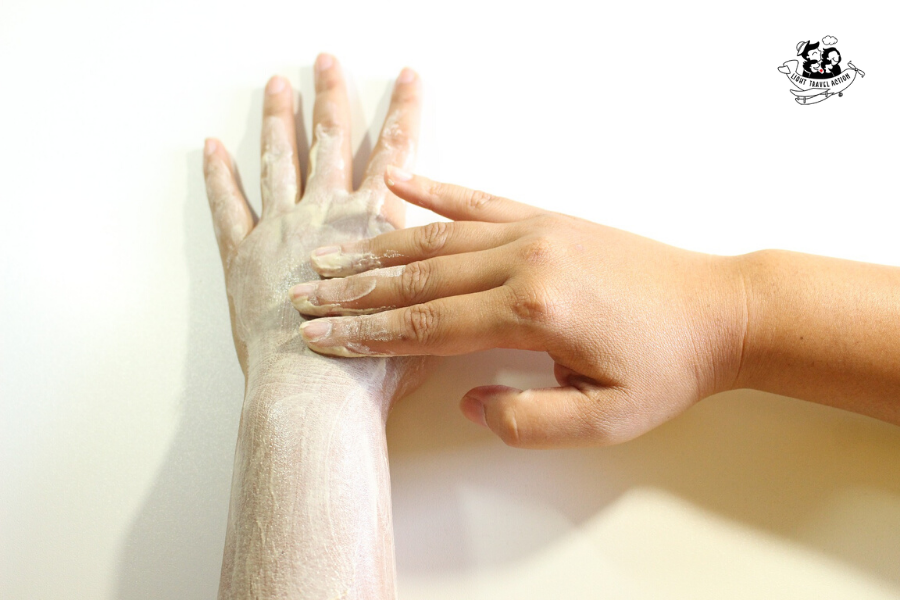 Scrubbing helps in getting rid of dead skin cells and in increasing blood circulation.