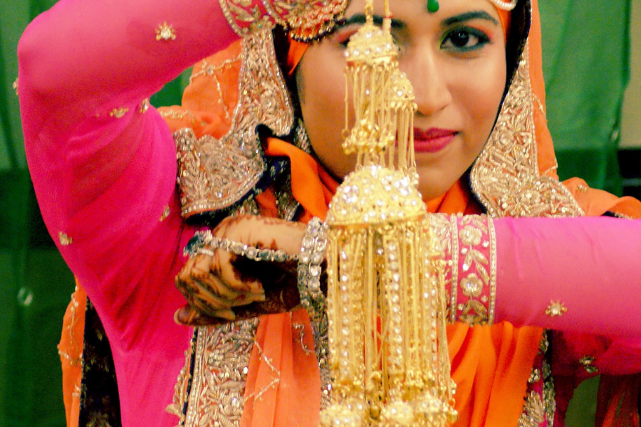 They are dome-shaped tiered pieces held together with colorful or beaded threads, or dainty metallic chains. All Punjabi brides wear these beauties