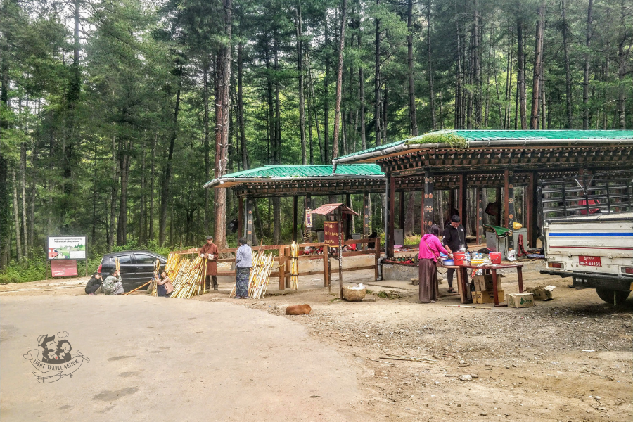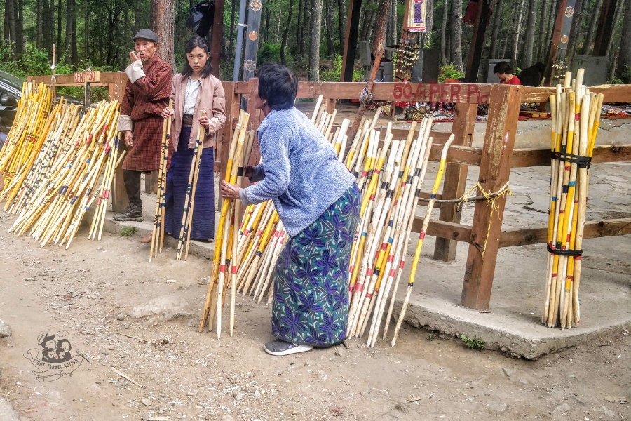 This is the starting point of the Tiger’s Nest Trek. You can see in the image below locals standing with Bundles of bamboo sticks. These can be taken on hire for Rs.50 (NU 50/-). You need to return it once you are back.