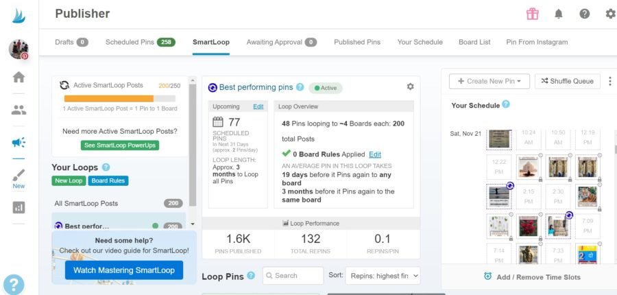 You can also customize your Smartloop Schedule and choose how many times per day you want to pin from this loop. You can see in ‘Your Schedule’ how your schedule looks like.
